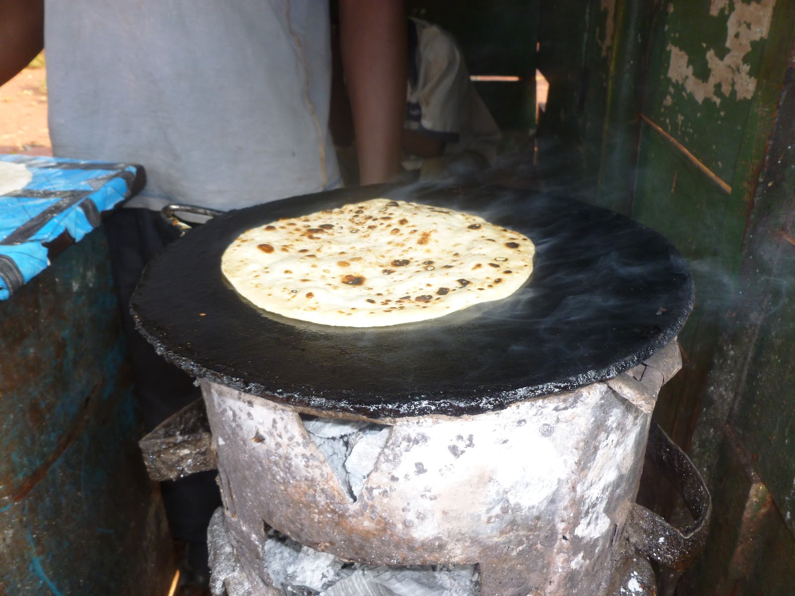 Pictured above are potatoes, sweet potatoes, chapatti, and cabbage with pea stew |